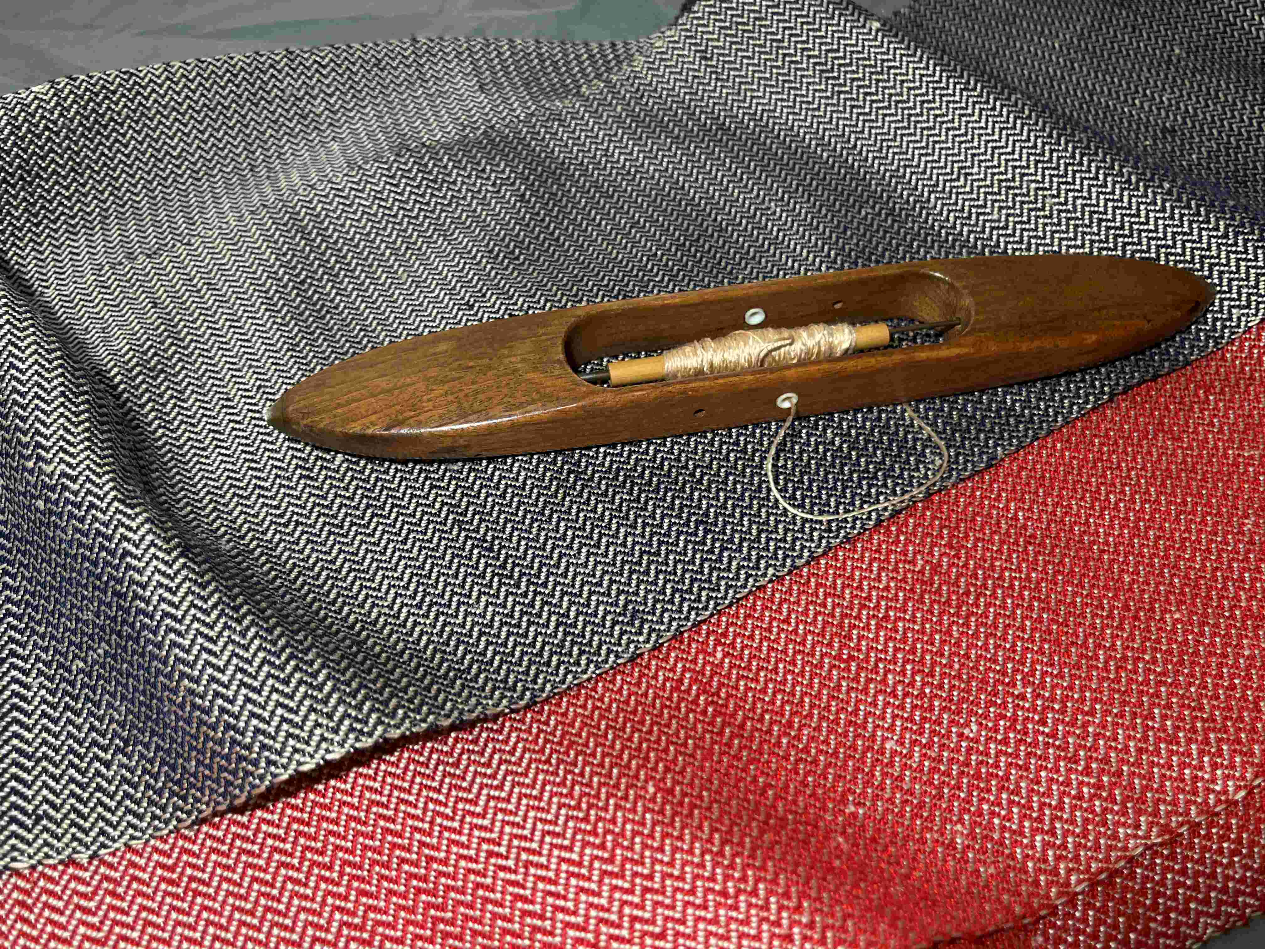 「手織」 とんとんと昔ながらの手機で織り、手間はかかりますが、あたたかみがあり、ふんわりとした仕上がりになります。